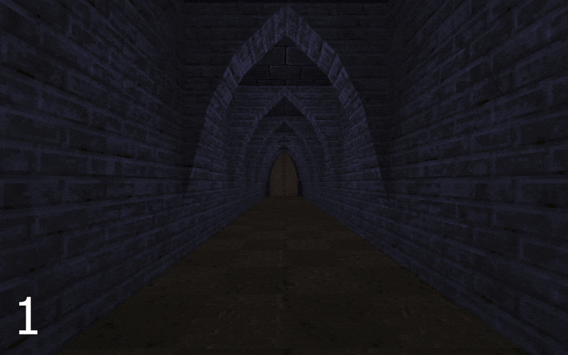 Over the course of the level, the lighting becomes more intense. There are long corridors that the player traverses through as they intrude, and each one has more intense flickering and pulsing lighting than the last. This is a response from the castle and its haunted creatures, that are trying to drive the player out of the castle.